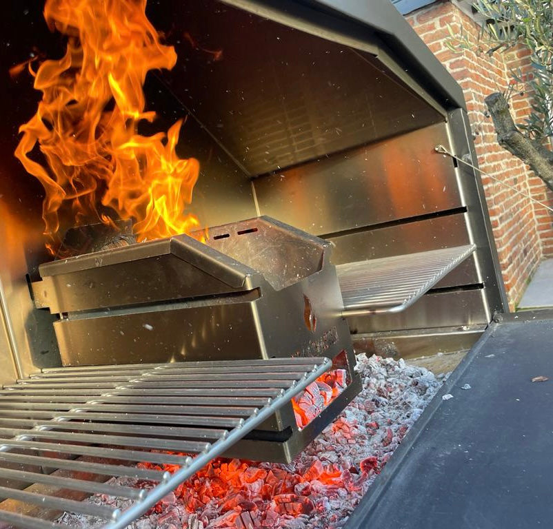 • possibilité d'accrocher la boîte à feu sur la droit ou la gauche pour pouvoir insérer une grande grille