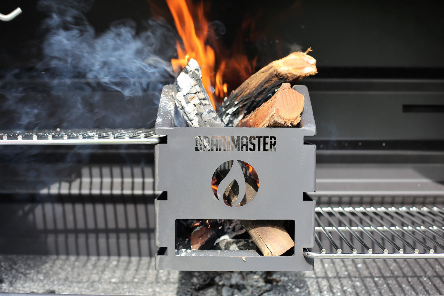 The Braai barbecue is lit with wood and is built around a central element called a "firebox". Logs of wood are placed in this stainless steel element and the bars constituting the floor of this firebox allow these logs to be held, while allowing the embers to escape. The embers fall, and can be distributed evenly in the lower receptacle; under the pot, the grill, the pizza stone, the plancha...
