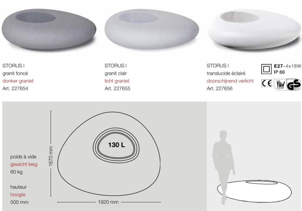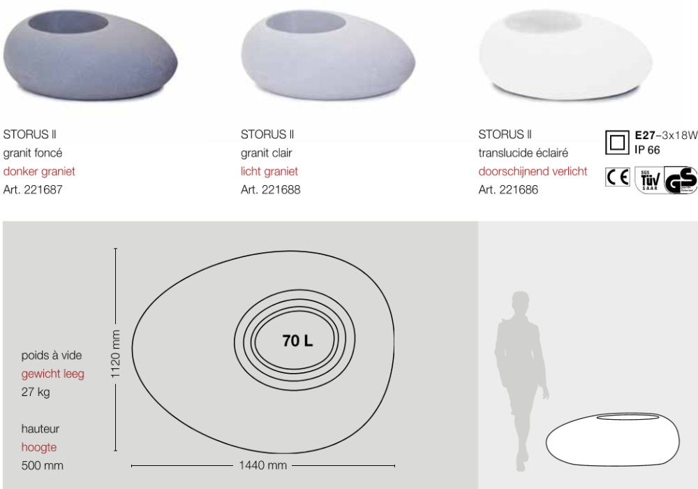 Avec ce design atypique et très joli, les bac à plantes STORUS sont une véritable alternative aux formes classiques des pots à plantes. Ses lignes gracieuses rappellent un galet de rivière qui s'intègre à tout moment harmonieusement dans l'environnement. Par son esthétique, il s'intègre parfaitement dans les jardins, les foyers ou les pièces à vivre de conception moderne.